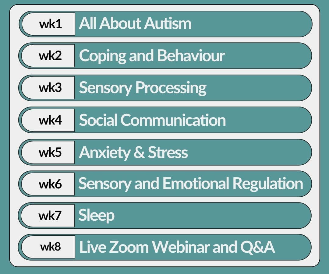 Autism-focused parenting classes from our expert team on specific topics like sleep and managing challenging behaviours.