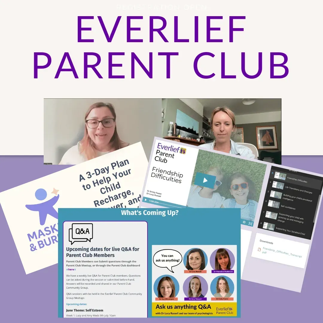 Inside Everlief Parent Club, an experienced team of HCPC registered UK child psychologists guide you to help your child feel calmer, happier - and family life feel lighter.
